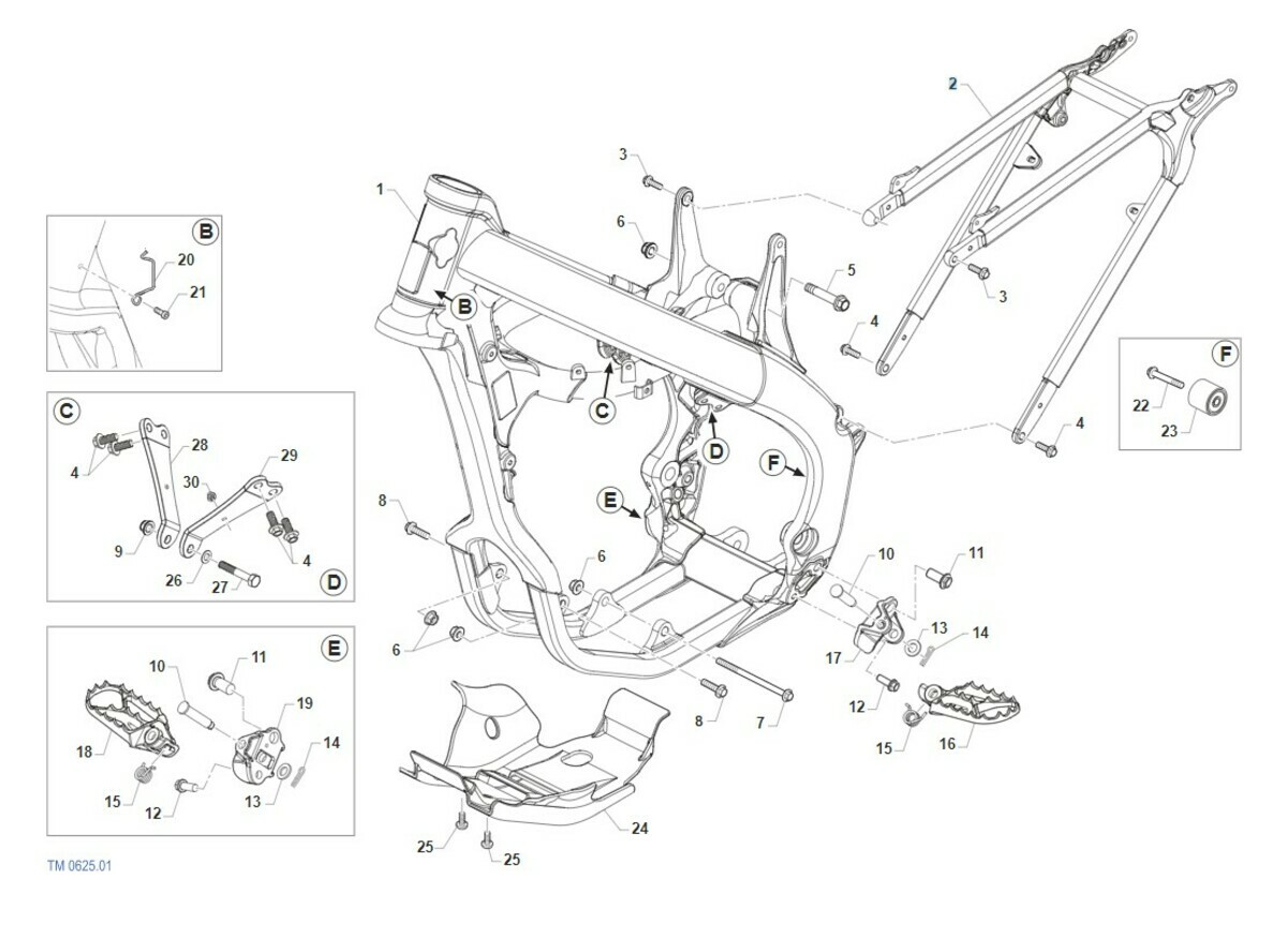 Hlavní a podsedlový rám MX 250 2T 2023