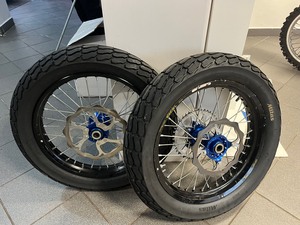 Na prodej kola na supermoto 1x přední 16,5 včetně kotouče a pneu + 2x ...