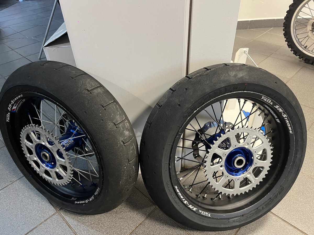 Na prodej kola na supermoto 1x přední 16,5 včetně kotouče a pneu + 2x zadní 5.0 včetně kotouče/pneu a rozety.