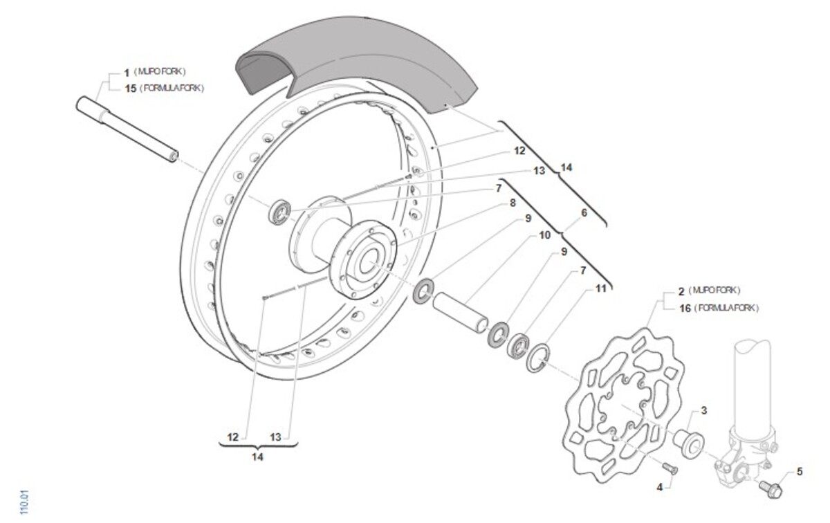 AXLE, FRONT WHEEL, JUNIOR, MUPO 38