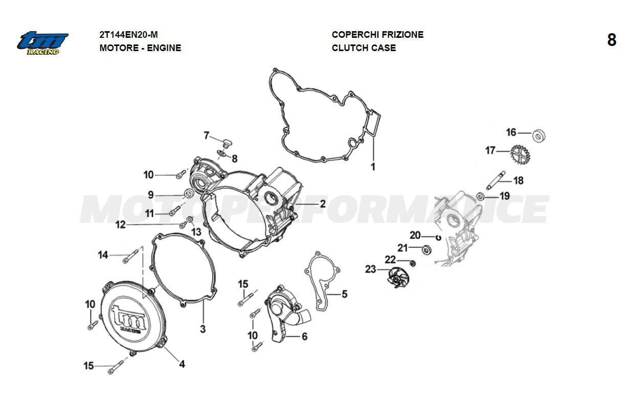 Víka spojky a vodní pumpa EN 144ccm 2020