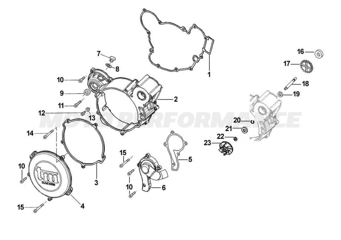 Víka spojky a vodní pumpa MX/EN 144ccm 2018