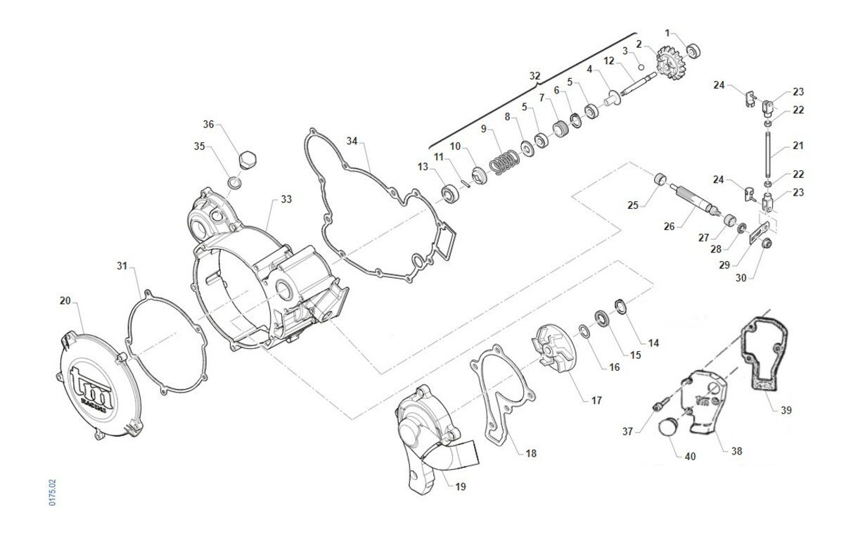 Víko spojky a vodní pumpa SMX 85 Junior 2022