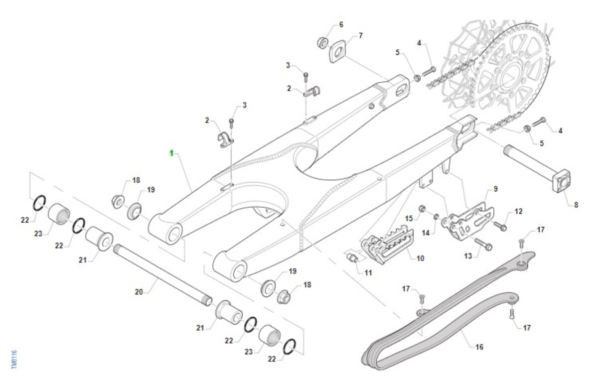 AXLE, SWINGARM 16 M. 95/06
